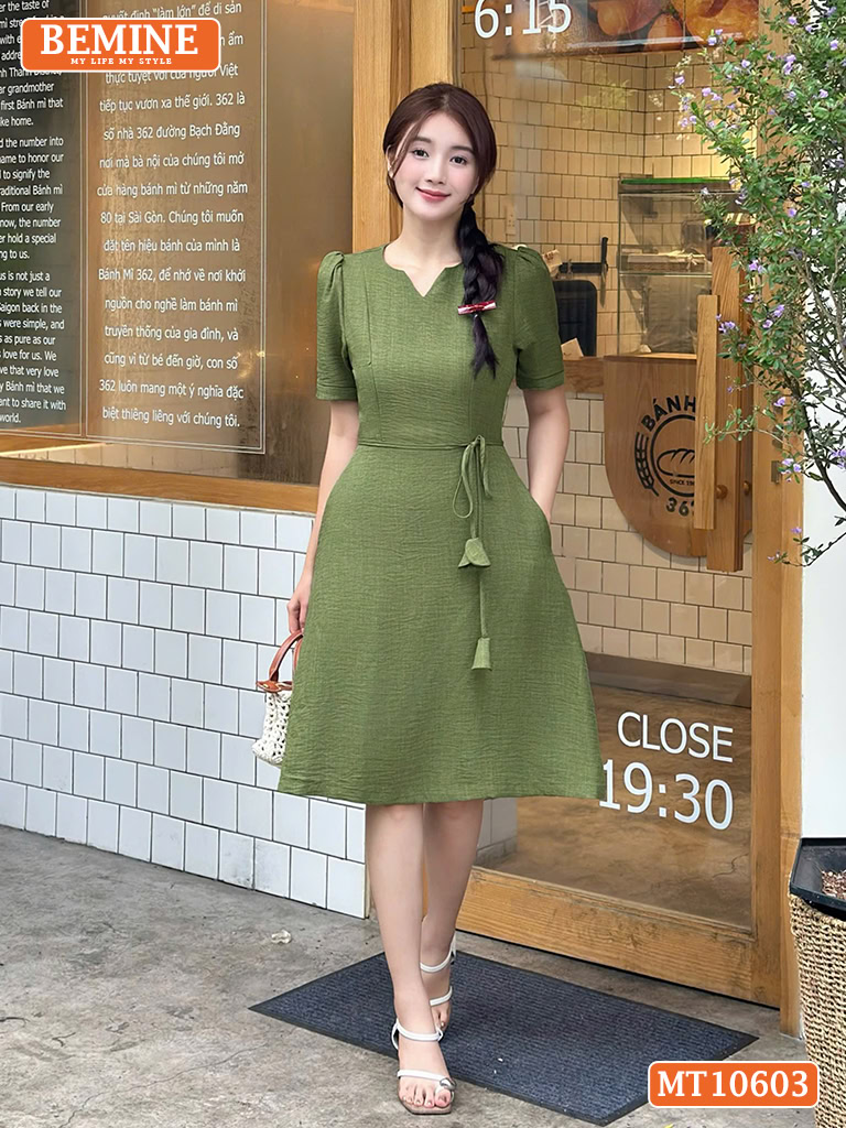 Dáng chữ A mang tính ứng dụng cao, phù hợp với mọi vóc dáng từ nhỏ nhắn đến đầy đặn. Đầm thiết kế BEMINE cổ tròn xẻ dáng chữ A MT10603 này không chỉ tạo cảm giác thoải mái khi di chuyển mà còn giúp người mặc luôn giữ được vẻ ngoài thanh lịch và chuyên nghiệp.