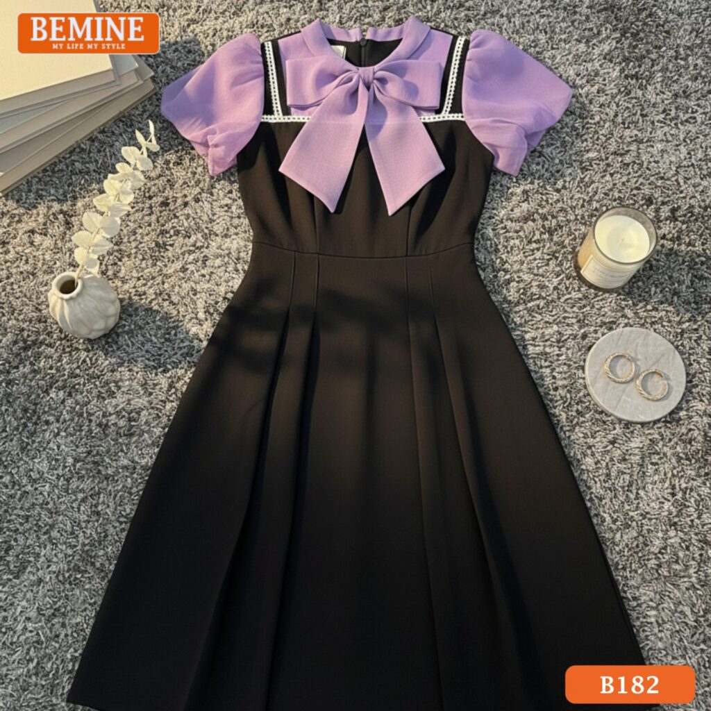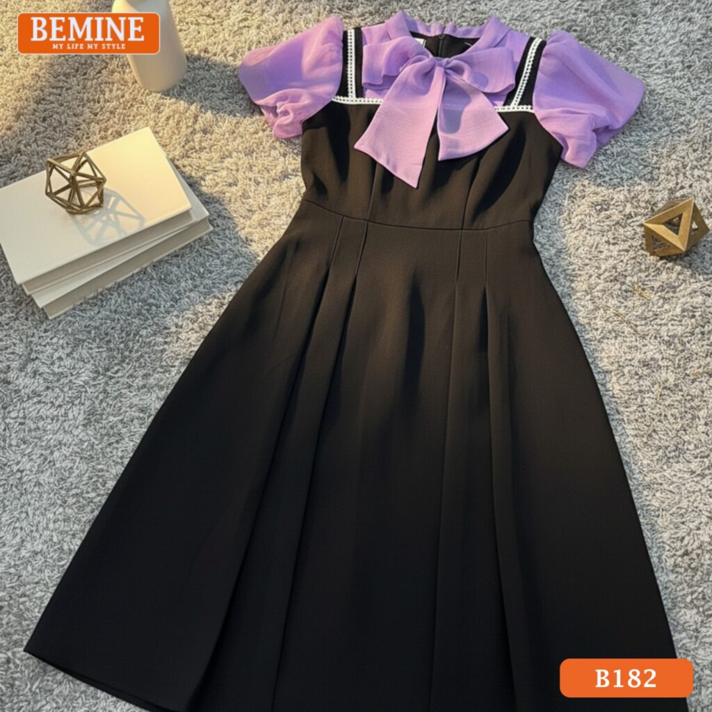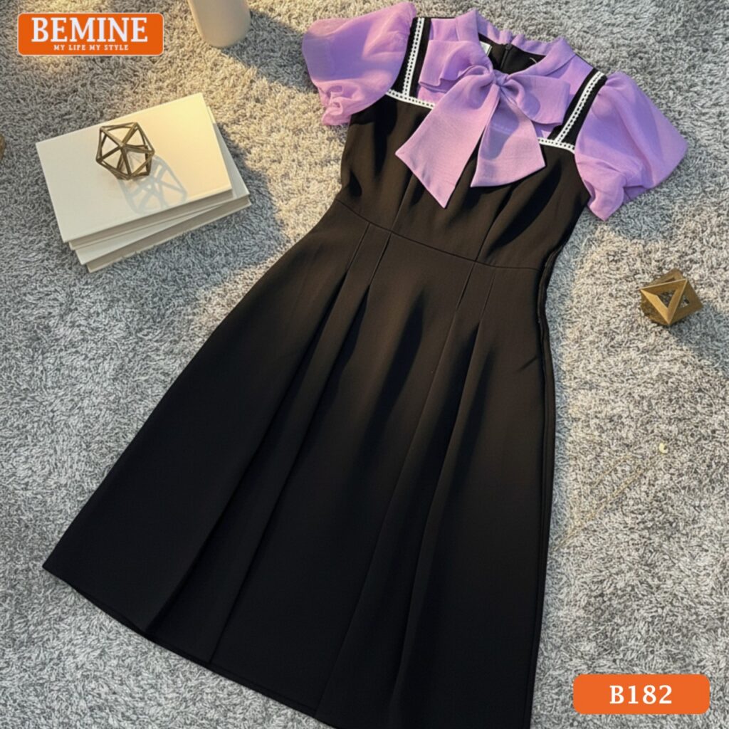 Đầm thiết kế BEMINE cổ trụ phối nơ giả yếm dáng chữ A phù hợp đi làm-B182