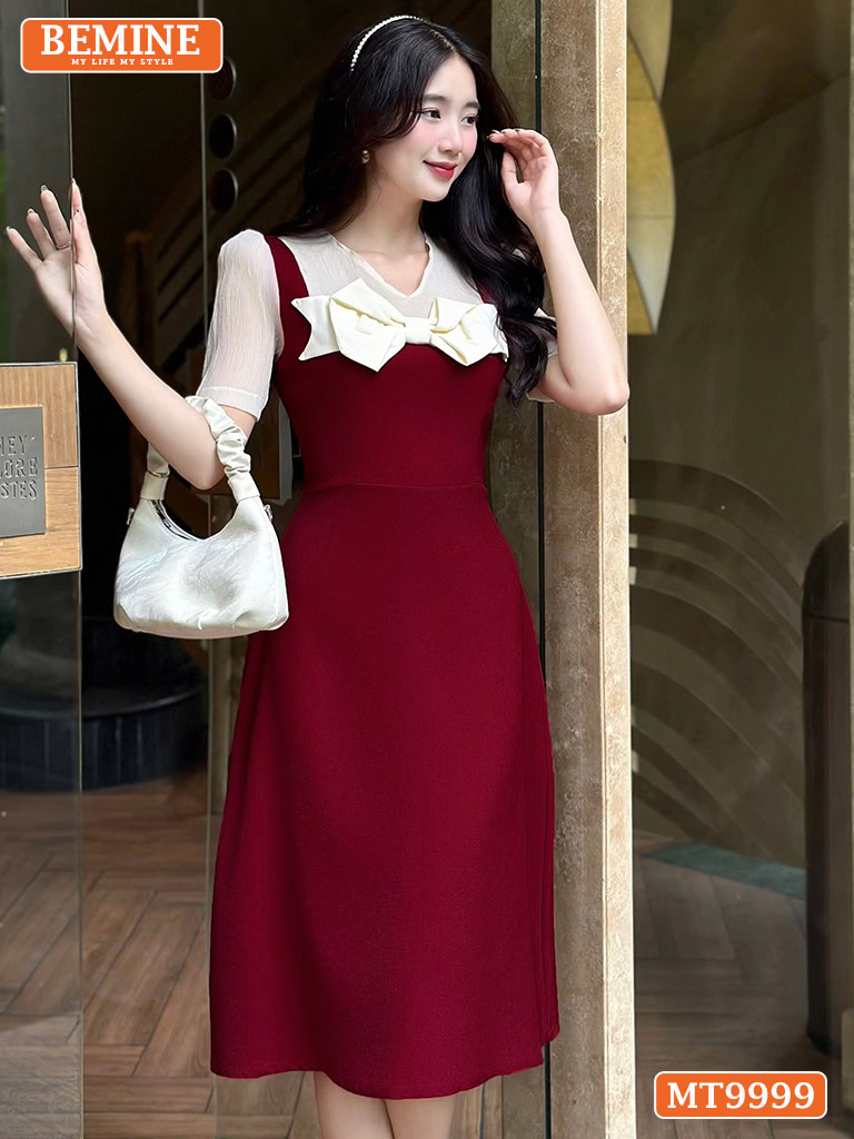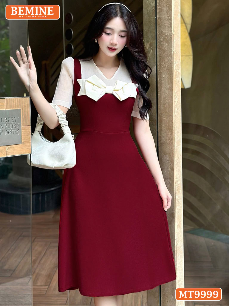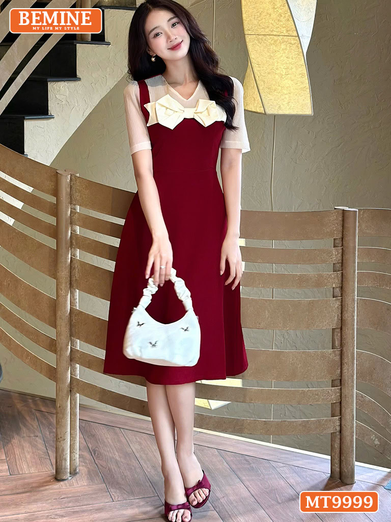 Đầm thiết kế BEMINE cổ V phối nơ giả yếm MT9999 – Sự lựa chọn hoàn hảo cho phái đẹp