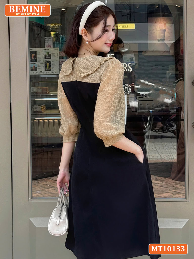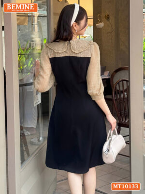 Đầm Thiết Kế BEMINE Cổ V Phối Ren Thêu Hoa MT10133 – Nâng Tầm Phong Cách Công Sở