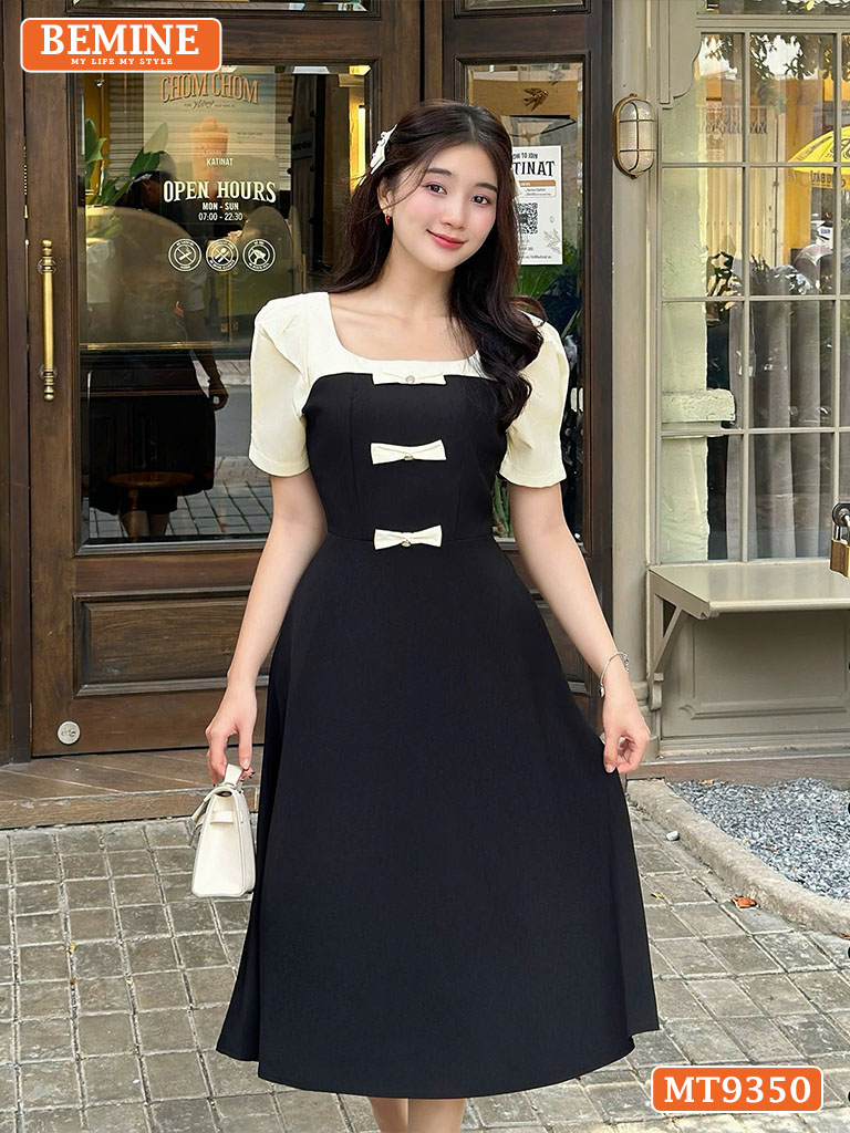 Đầm Thiết Kế BEMINE Cổ Vuông Kết Nơ Tay Phồng MT9350: Vẻ Duyên Dáng Cho Quý Cô Công Sở