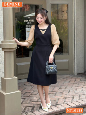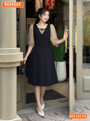 Đầm Thiết Kế BEMINE Cổ Vuông Phối Ren MT10158 – Tôn Dáng Thanh Lịch