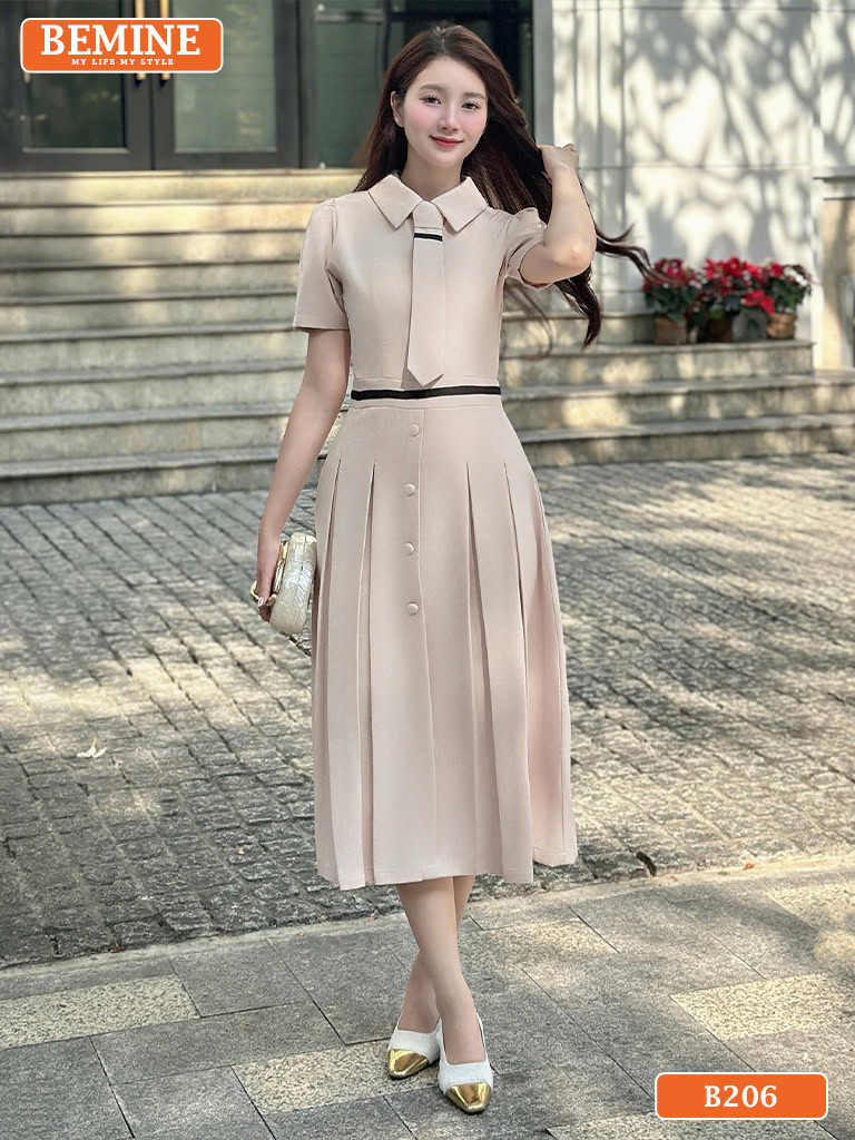 Đầm Thiết Kế BEMINE Dáng Chữ A Cổ Đức Cà Vạt Mới B206 – Vẻ đẹp thanh lịch vượt thời gian