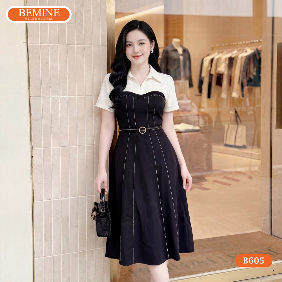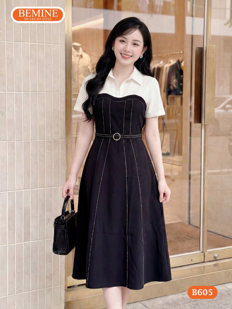 Giải mã sức hút của đầm thiết kế BEMINE dáng chữ a cổ đức chỉ chạy viền B605