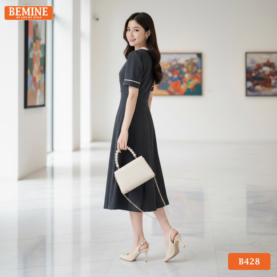 Mẫu đầm công sở BEMINE B428 dáng chữ A tôn dáng.