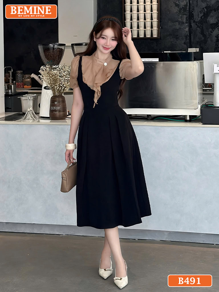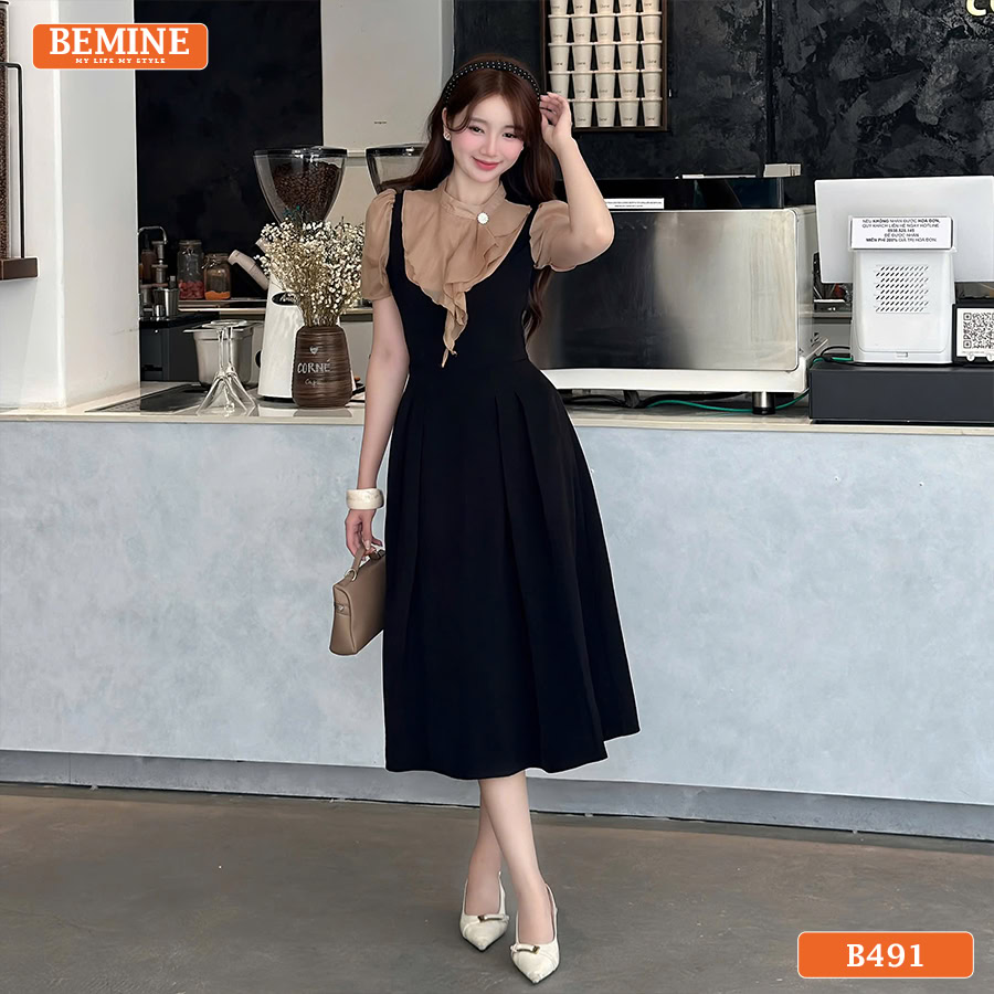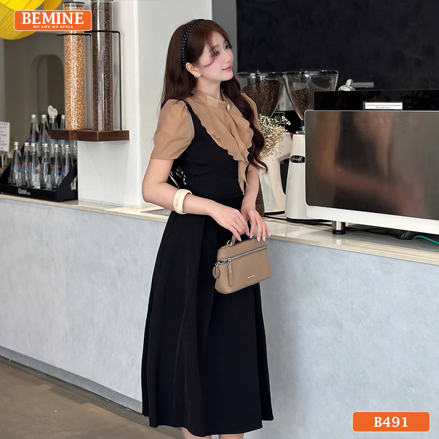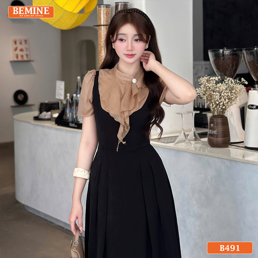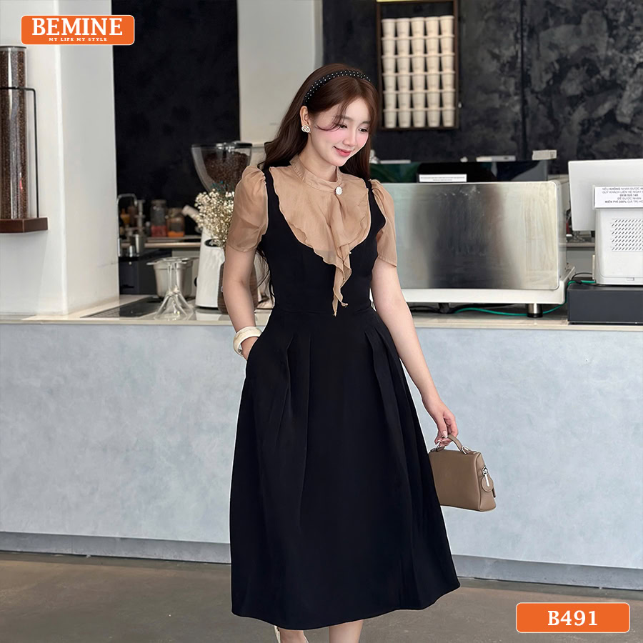 Đầm thiết kế BEMINE dáng chữ a cổ trụ phối tơ bèo B491 – Vẻ Đẹp Thanh Lịch