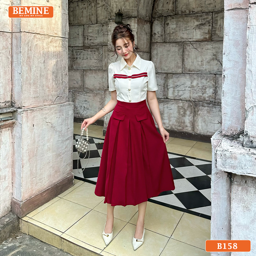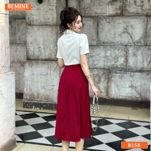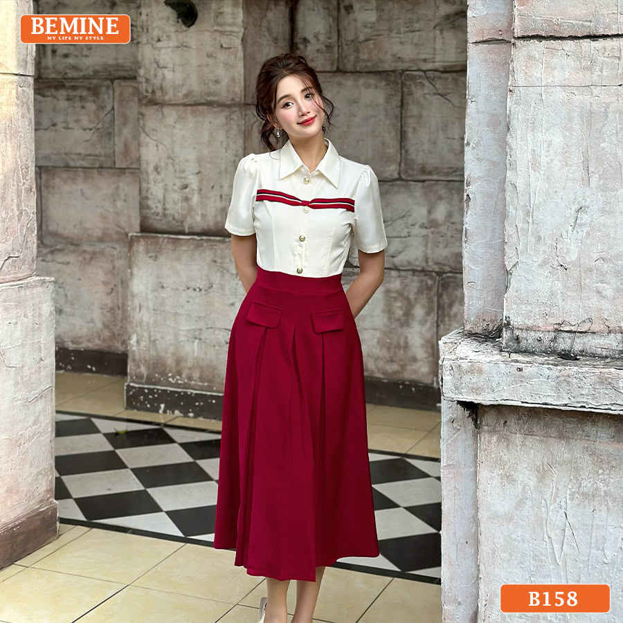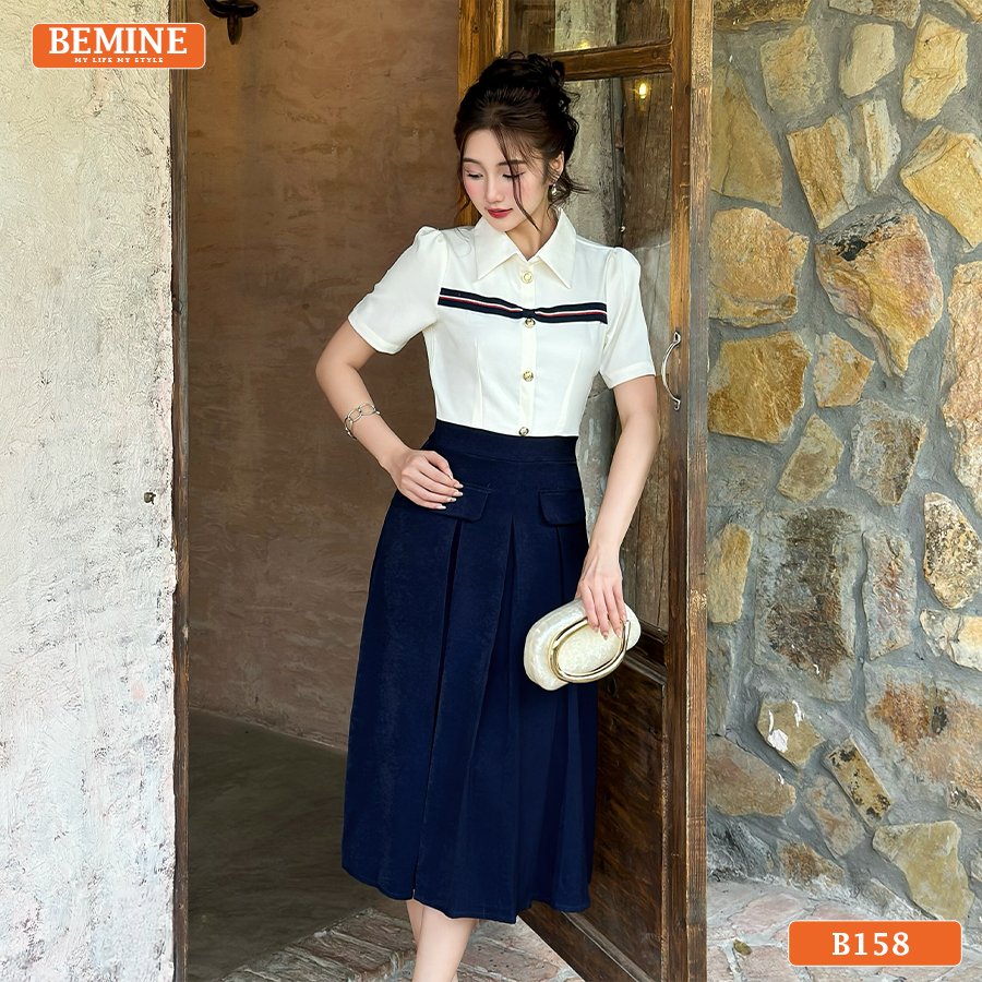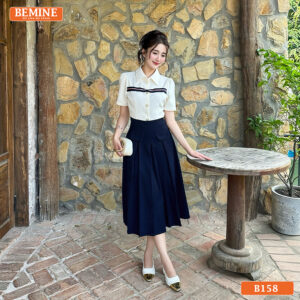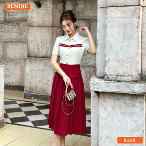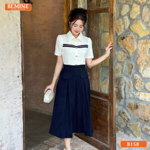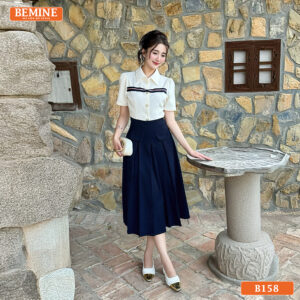 Khám Phá Đầm Thiết Kế BEMINE Dáng Chữ A Cổ Sơ Mi B158 – Phong Cách Thanh Lịch Công Sở