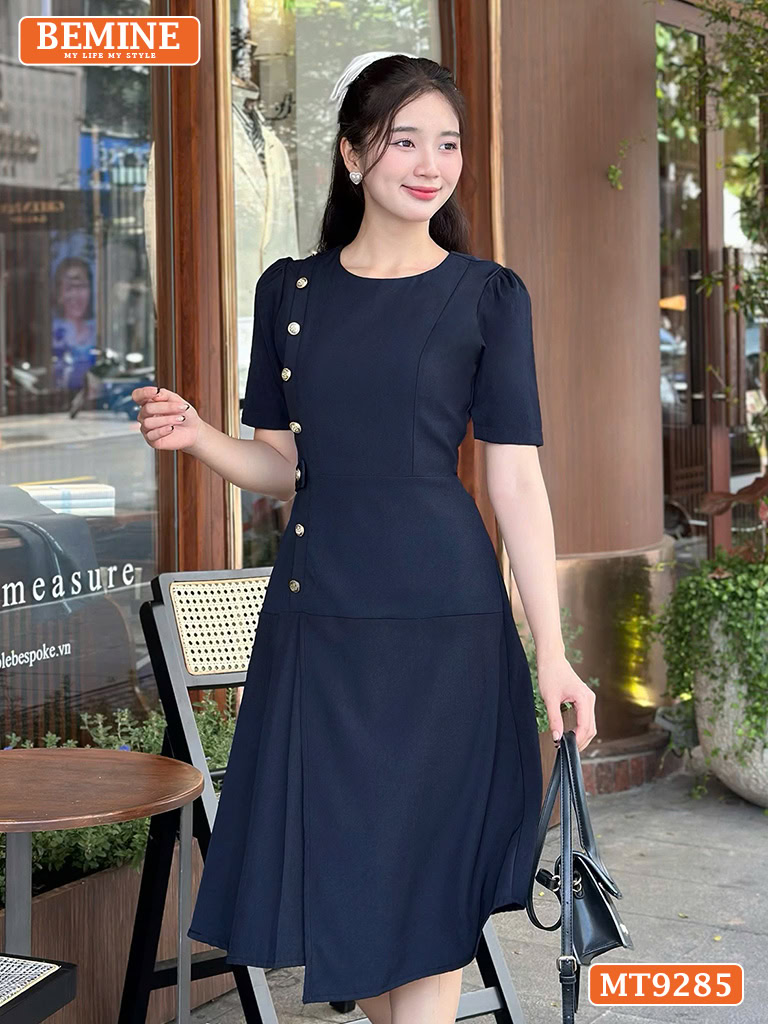 Đầm thiết kế BEMINE đính nút dáng xếp ly MT9285 -Thời Trang Công Sở Nữ Thanh Lịch và Hiện Đại