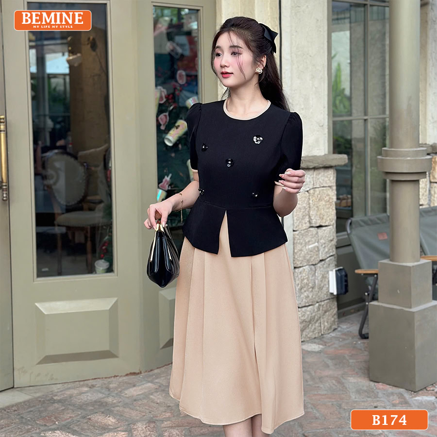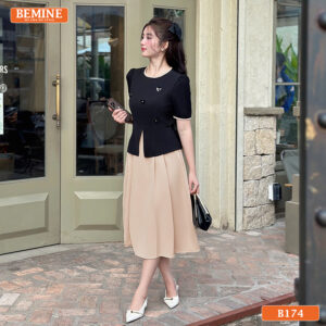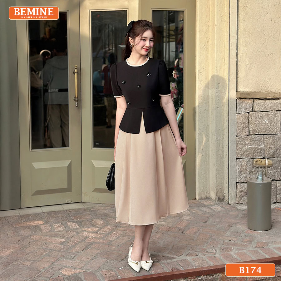 BEMINE xin chia sẻ với anh chị, Đầm thiết kế BEMINE Peplum Công Sở Cổ Tròn B174 Dáng Chữ A không chỉ là một trang phục mà còn là tuyên ngôn về sự thanh lịch, chuyên nghiệp. Lấy cảm hứng từ vẻ đẹp hiện đại và sự tự tin của người phụ nữ công sở, chiếc đầm peplum công sở này được BEMINE thiết kế tỉ mỉ.