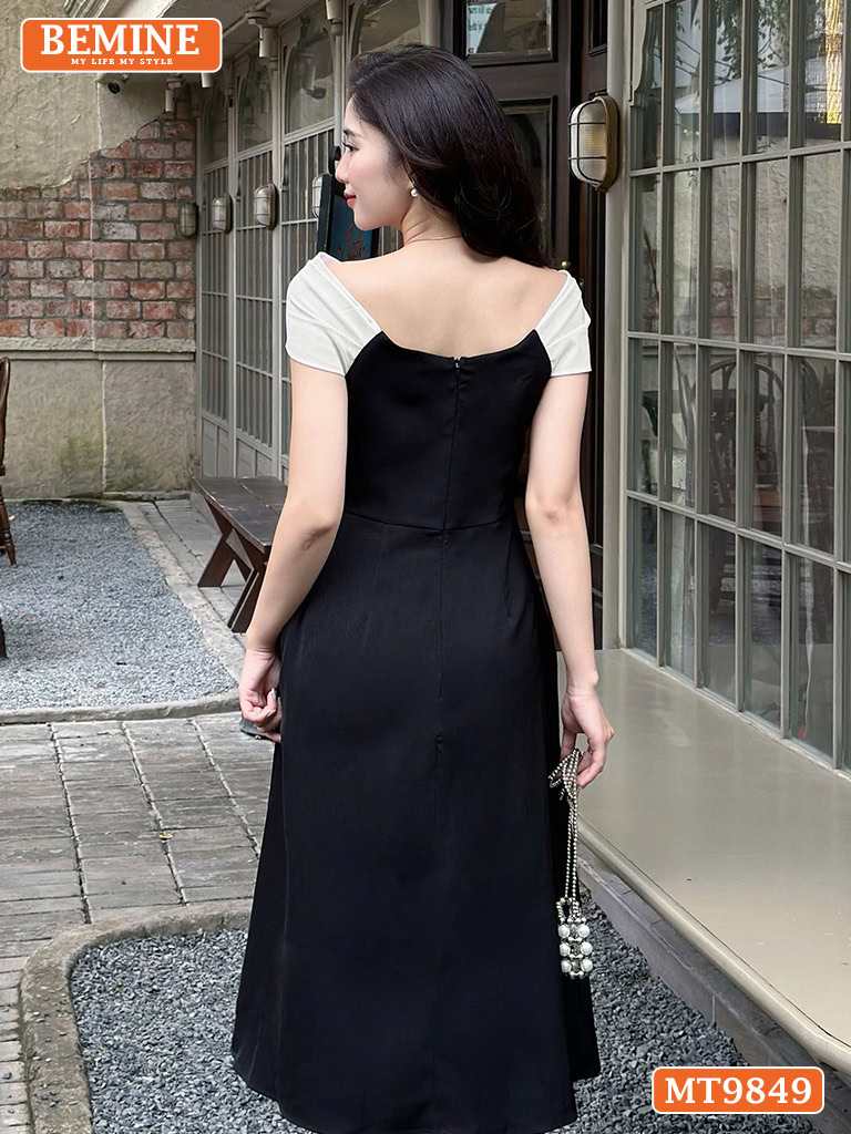 4. Thông Số Kỹ Thuật Chi Tiết Đầm Thiết Kế BEMINE Trễ Vai Co Dãn Dáng Dài MT9849: