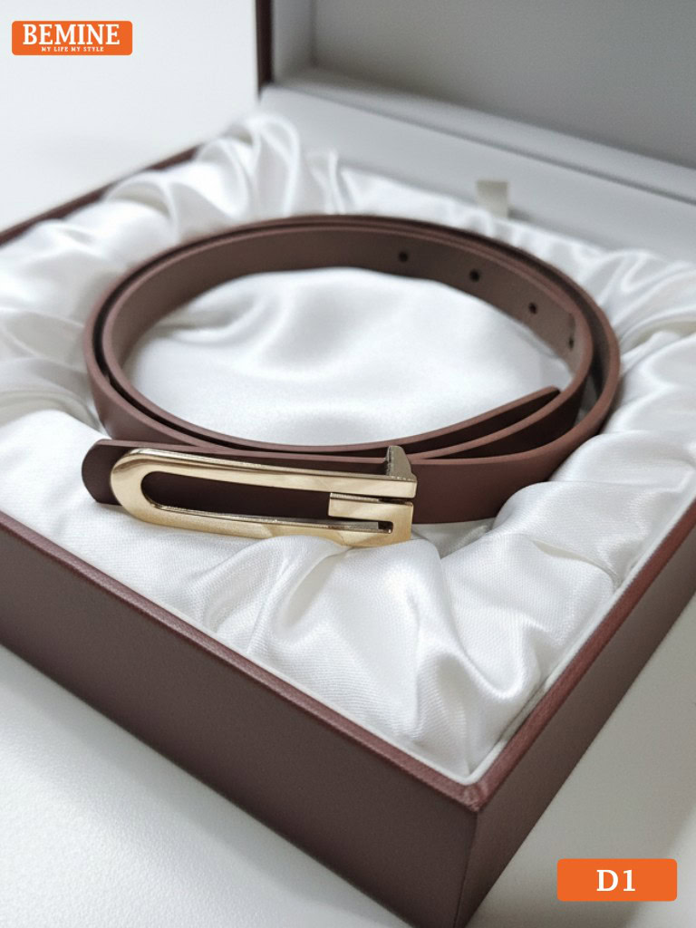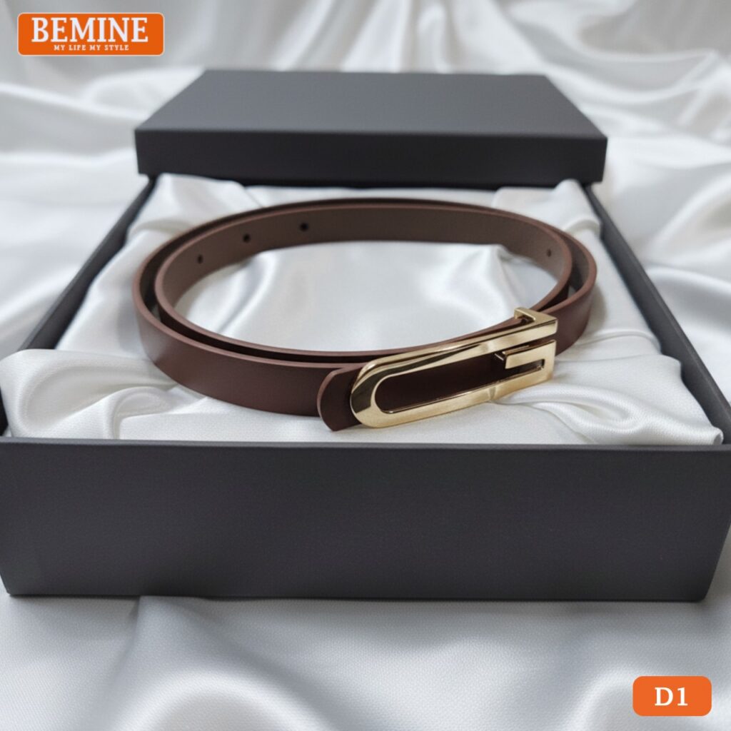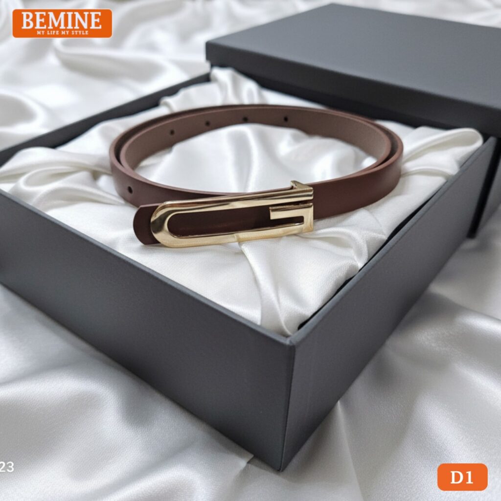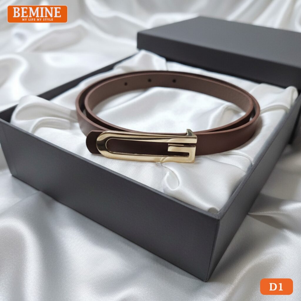 Dây thắt lưng BEMINE bản nhỏ 1,5cm mặt chữ G mạ vàng sở hữu thiết kế tinh giản nhưng đầy tinh tế, phù hợp cho mọi phong cách từ công sở đến dạo phố. Sản phẩm được làm từ da PU cao cấp, bề mặt mịn, lên form đẹp và không dễ bị gãy nếp khi sử dụng lâu dài.