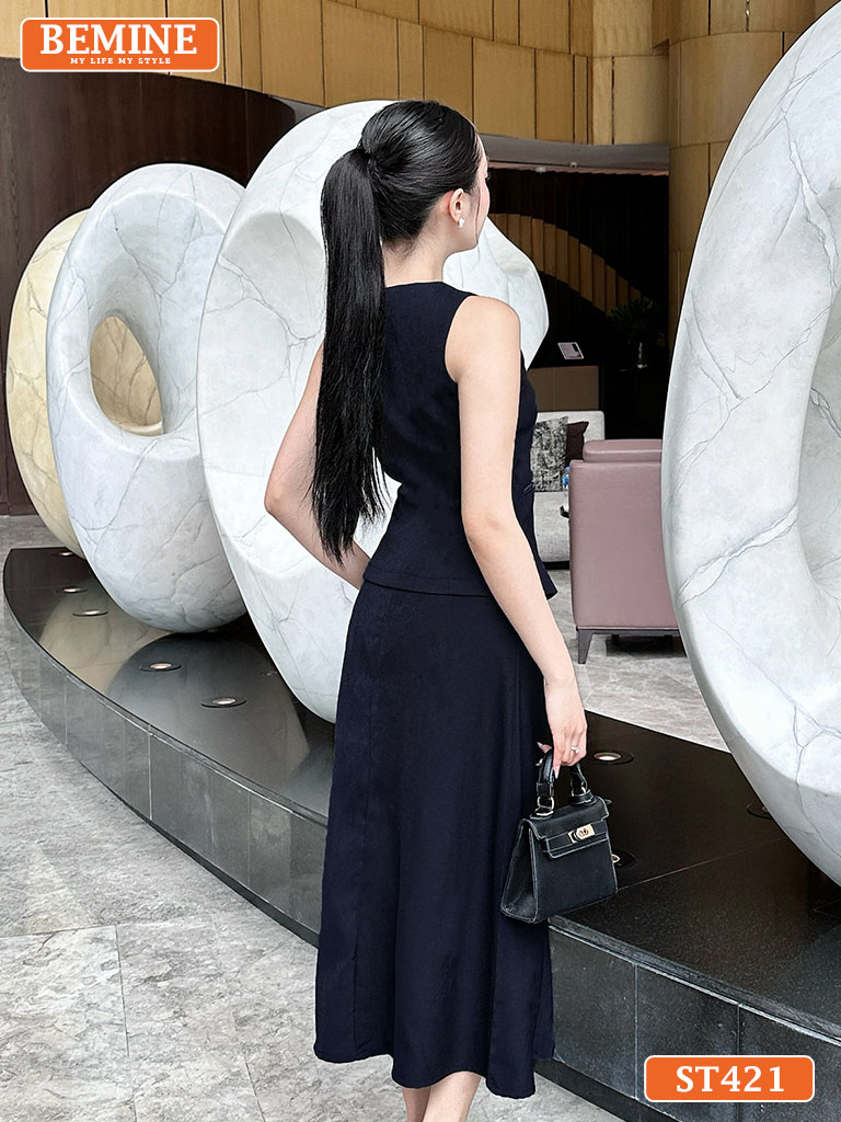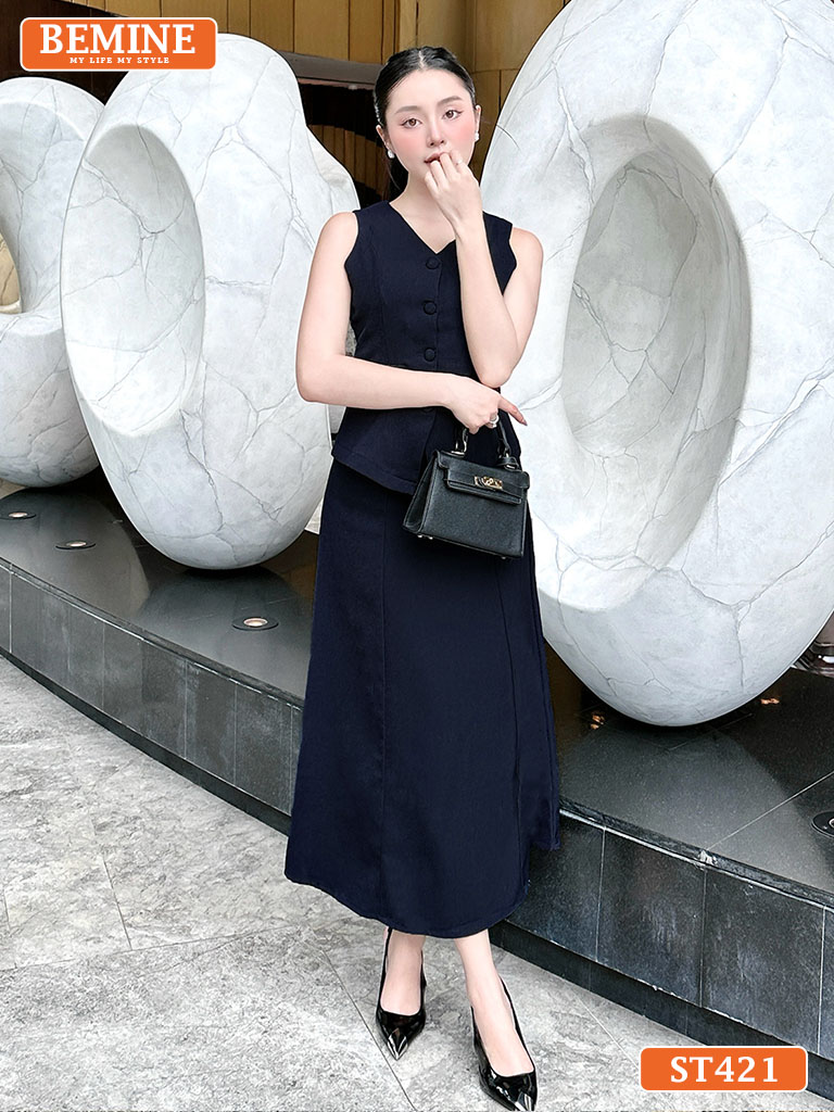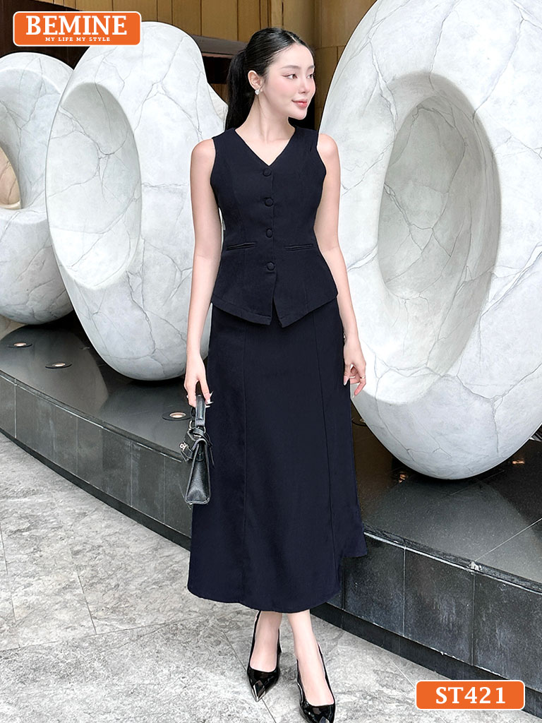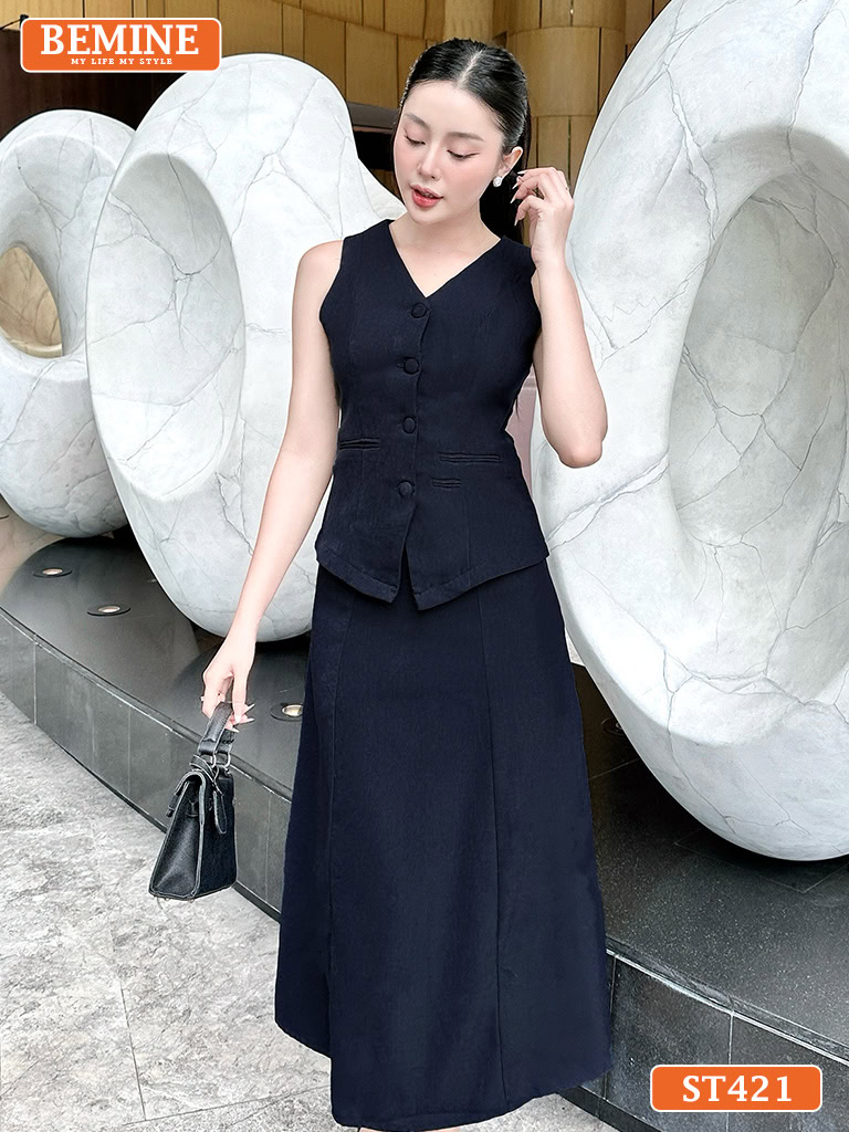 Set Áo Gile Chân Váy Dáng Dài Công Sở Thanh Lịch