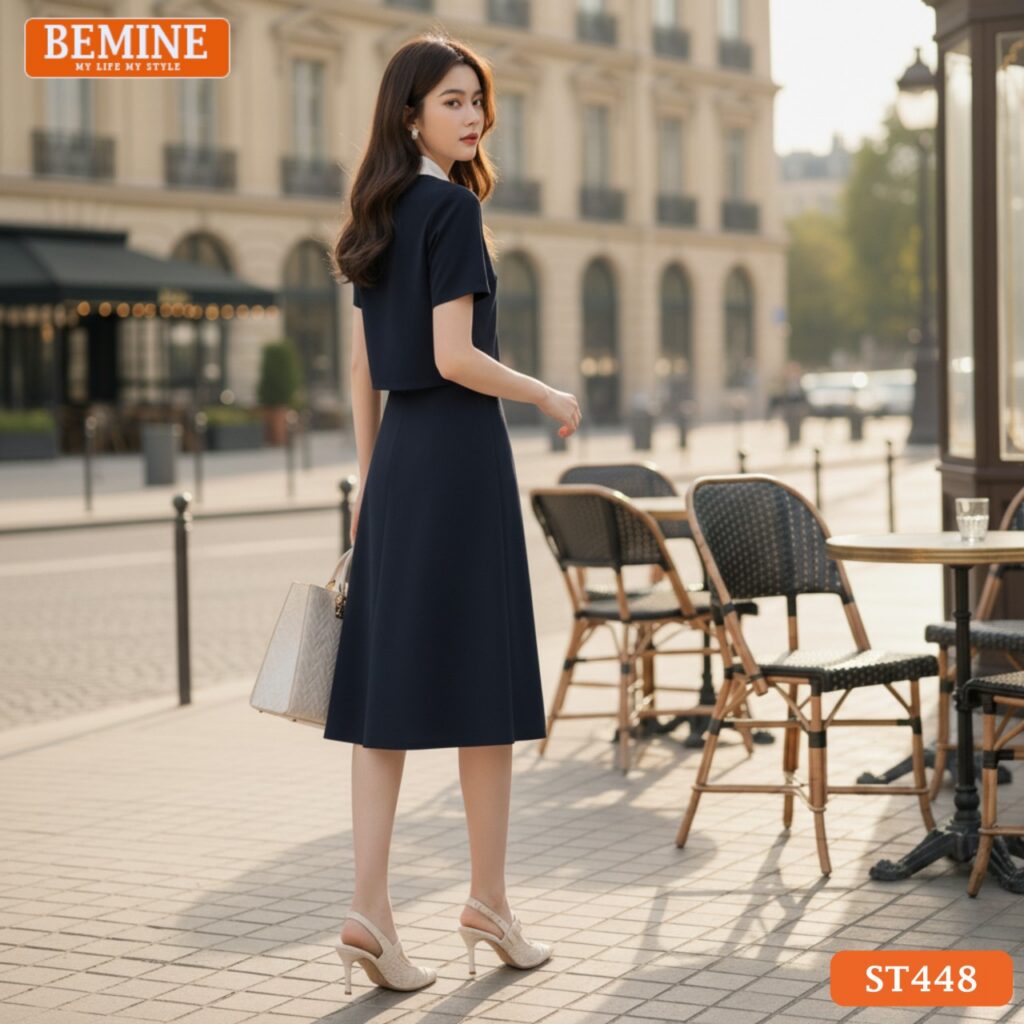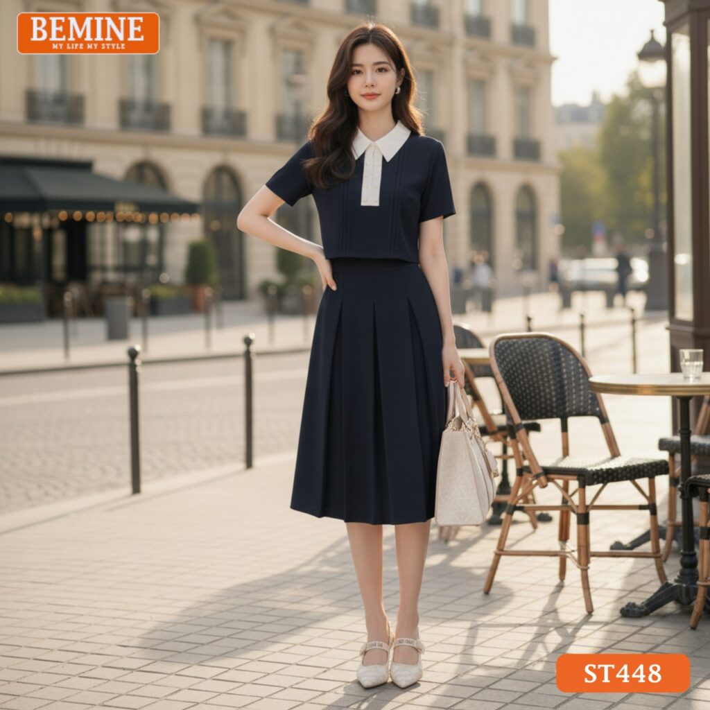 BEMINE xin chào anh chị, hôm nay BEMINE sẽ giới thiệu một siêu phẩm mới dành riêng cho quý cô công sở. Sản phẩm set thiết kế BEMINE áo cổ sơ mi khóa kéo trước chân váy dáng dài ST448 hứa hẹn sẽ mang đến luồng gió mới cho tủ đồ của anh chị với sự kết hợp tinh tế giữa nét thanh lịch và hiện đại.