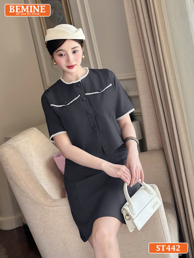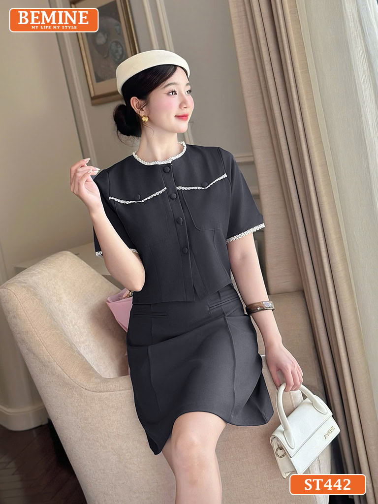 Set thiết kế BEMINE áo cổ tròn chân váy ST442 – Thanh Lịch và Thoải Mái