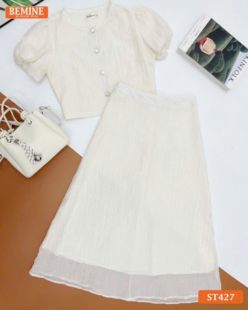 Set Thiết Kế Tơ Voan BEMINE Áo Chân Váy Dài ST427 – Nét Thanh Lịch Cho Quý Cô Hiện Đại